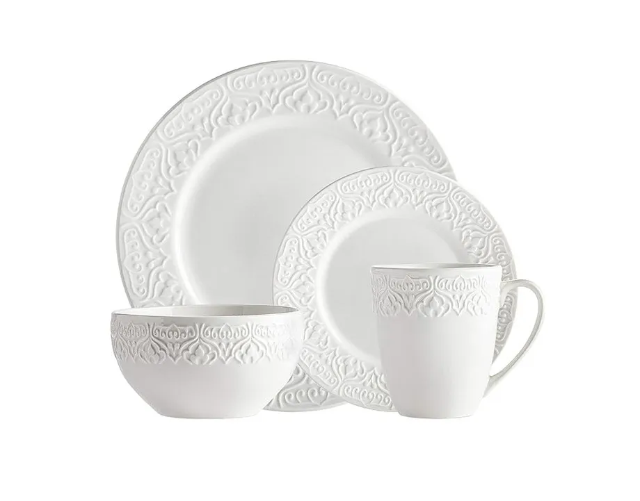 Elevate your dining experience with this exquisite embossed dinnerware collection.