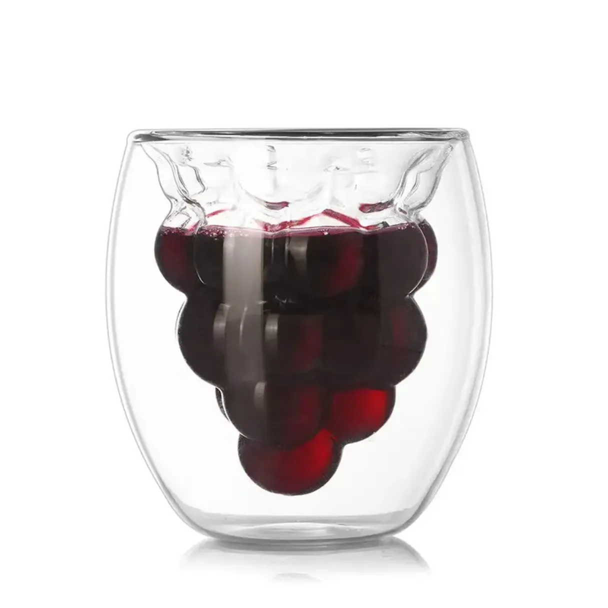 With a generous 170ml capacity, these cups stand at 9.5cm tall with an 8cm wide opening – the perfect size for espresso, lattes, tea, or desserts. The intricate fruit-shaped interior (visible through the crystal-clear glass) adds a whimsical touch to every sip. Whether you choose the cheerful pineapple, romantic peach, vibrant strawberry, or lush grape design, each cup transforms ordinary drinks into extraordinary experiences. The double-wall construction not only enhances visual appeal by creating a mesmerizing layered effect but also solves the classic glassware problem: no more burning fingers with hot drinks or condensation puddles with cold beverages!