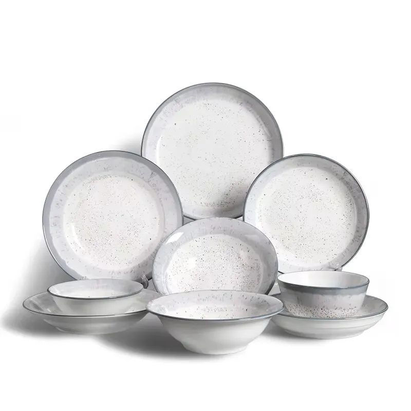 ▸ 10.5" Dinner Plate: Expansive surface with speckled rim – framing meals in minimalist elegance.